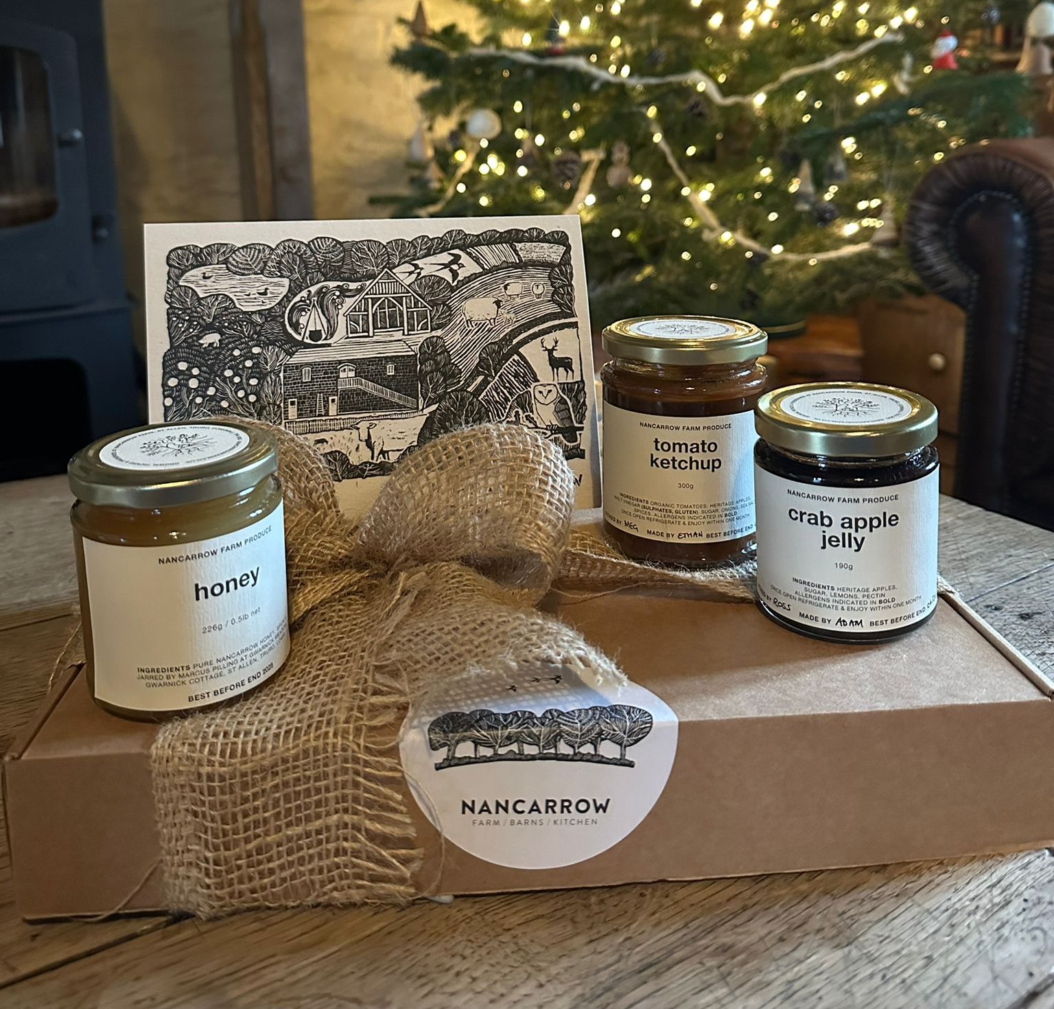 Gift wrapping includes a presentation box, a bow and a Nancarrow farm card with an envelope to gift.
